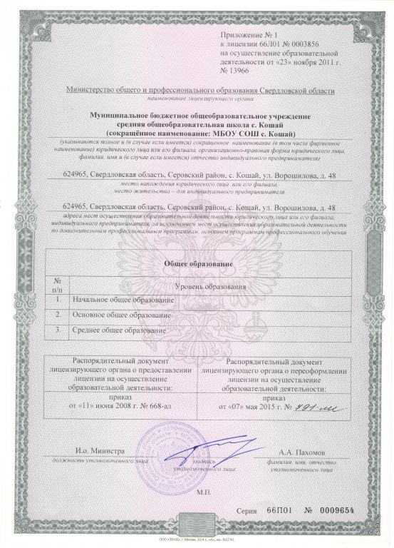- Места осуществления образовательной деятельности при использовании сетевой формы реализации образовательных программ: 24965, Свердловская обл, Серовский р-н, Кошай с, Ворошилова ул, здание № 48